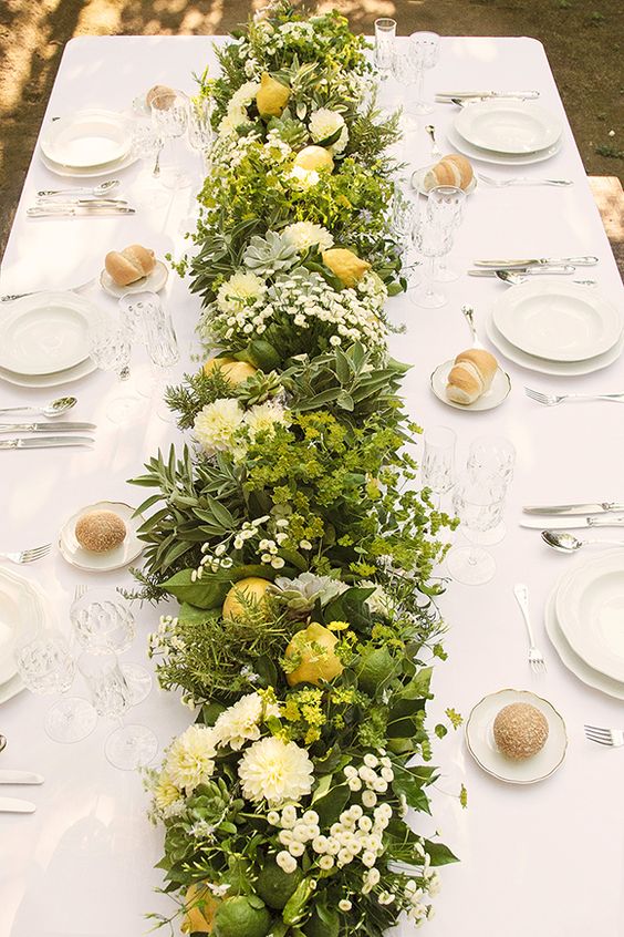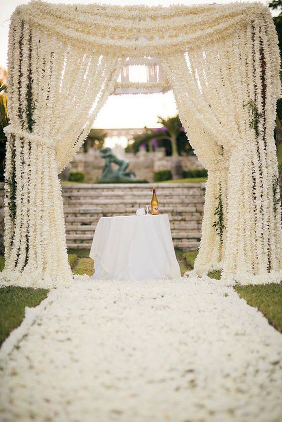 ตกแต่งทางเดินเข้างาน ราวจับบันได หรือตรงแท่นพิธี ด้วย Garlands (มาลัยดอกไม้ )แซมด้วยใบไม้สีเขียว จะทำให้งานดูสดชื่นและโรแมนติกที่สุด