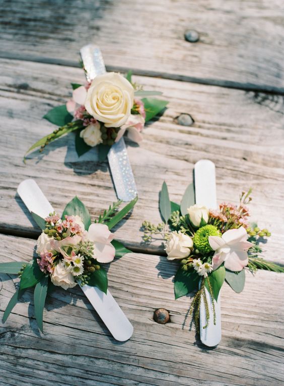 การถือช่อดอกไม้ของเพื่อนเจ้าสาวอาจจะทำให้ตัวเพื่อนเจ้าสาวนั้นทำอะไรได้ไม่ค่อยสะดวกเท่าที่ควร จึงเปลี่ยนวิธีจากการถือช่อดอกไม้ มาเป็น ดอกไม้ผูกข้อมือ สาวๆ แทน