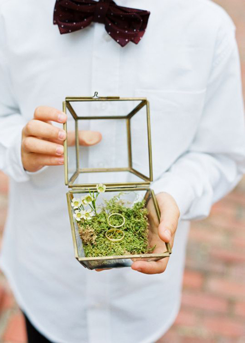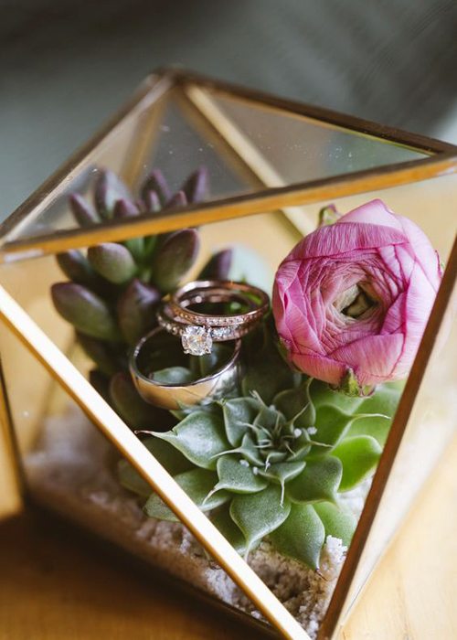 เบื่อหรือยังกับหมอนวางแหวนแต่งงาน ก็แค่ปรับเปลี่ยนนำแหวนแต่งงานมาเป็นส่วนหนึ่งในการจัดสวน โดยเคล็ดลับอยู่ที่การเลือกขวดโหลที่กะทัดรัดน่ารัก แต่สามารถใช้มือหยิบแหวนออกมาได้ง่ายๆ