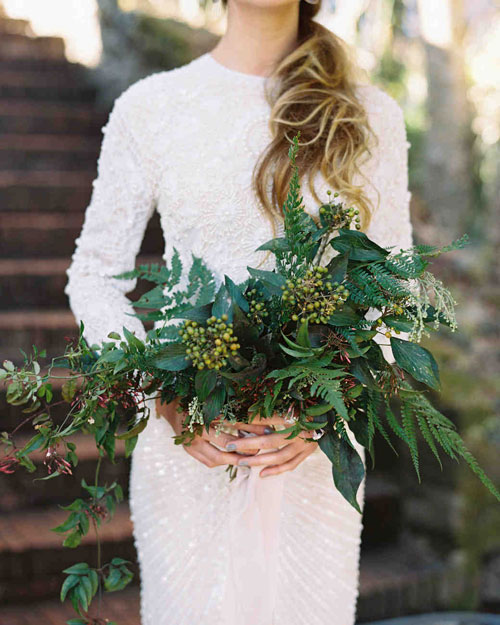 ใครที่คิดว่าใบเฟิร์นสีเขียวๆ จะนำมาจัดเข้าช่อสวยๆ ให้เจ้าสาวถือเดินเข้างานไม่ได้เราขอเถียงนะคะ เพราะเราไปเจอไอเดีย ช่อดอกไม้เจ้าสาว ที่มีกิมมิคพิเศษตรงที่ช่างดอกไม้นำใบเฟิร์นขนาดต่างๆ มาแซมจนกลายมาเป็นช่อดอกไม้สวยๆ ที่มีความเก๋ไก๋ไม่ซ้ำใคร ซึ่งถ้าคุณคิดว่า จะนำเข้าช่อได้ทุกแบบหรือเปล่า (อ่านเพิ่มเติม : 7 แบบช่อดอกไม้เจ้าสาวเลือกเลยแบบไหนที่คุณรัก) เราบอกตรงนี้เลยค่ะว่า ทุกแบบที่จัดได้ว่าเป็นช่อดอกไม้ เจ้าใบเฟิร์นเหล่านี้สามารถเข้าไปเป็นส่วนหนึ่งได้สบายๆ ค่ะ
