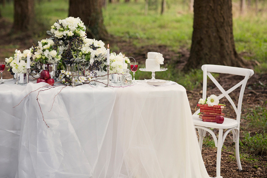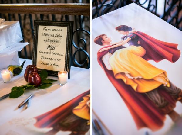 การตกแต่งภายในงานจะทำให้ธีมสโนวไวท์ออกมาดูสมบูรณ์แบบ หากคุณไม่เลือกจัดพิธีในโรงแรมลองจัดในสวนก็น่าจะเข้ากับธีมได้ดีที่สุด งานนี้เน้นดอกไม้สีสันสดใส เช่นสีแดงที่ทำให้โต๊ะอาหารดูมีดีเทล (อาหารดูน่าทานมาขึ้นอีกด้วย) หรือมีแจกัน เชิงเทียนสวยๆ ก็ทำงานให้ภายในงานดูหรูหราขึ้น แต่หากอยากให้งานออกมาดูสนุกสนานก็เพียงแค่เพิ่มกระจกตั้งไว้ในมุมต่างๆ ภายในงานคล้ายกับเป็นกระจกวิเศษในการ์ตูนก็เป็นกิมมิคเล็กๆ ให้งานออกมาดูก็น่าสนใจไม่น้อย