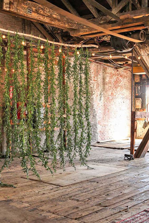 อีกหนึ่งแบบฉากถ่ายภาพสไตล์ Greenery ที่สามารถประหยัดงบประมาณได้ แค่หากำแพงเท็กเจอรืสวยๆ แล้วหาดอกไม้มาร้อยด้ายห้อยประดับไว้ แบบนั้นก็สวยและไม่แพง
