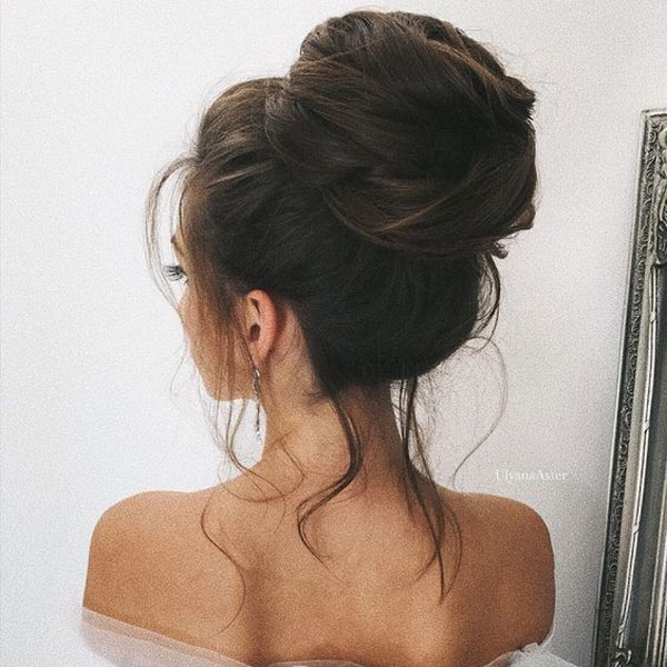 รวบผมขึ้นสูงในสไตล์สุดชิคไม่ซ้ำใครที่ดูแล้วมีเอกลักษณ์เป็นของตัวเองสุดๆ แต่ทรงนี้อาจจะเหมาะกับเจ้าสาวใบหน้ารูปไข่มากกว่าใบหน้าแบบอื่นๆ แต่ถ้าเจ้าสาวคนไหนพกความมั่นใจมาเต็มกระเป๋า แม้รูปหน้าไม่เอื้อแต่ใจรัก เราก็ไม่ขัดค่า