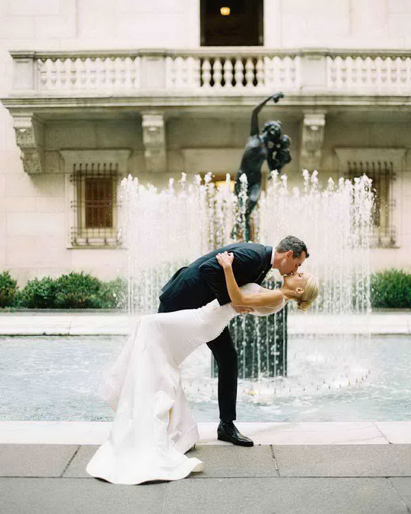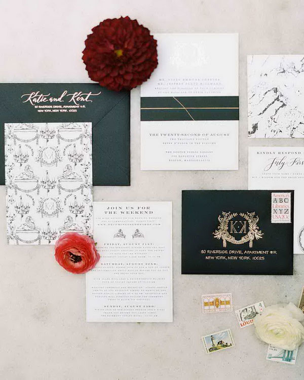 งานแต่งงานของเคธี่และเคนท์จัดขึ้นที่ห้องสมุดเมืองบอสตัน ท่ามกลางแขก 208 คน ซึ่งเป็นงานขนาดไม่เล็กไม่ใหญ่กำลังอบอุ่นเลยทีเดียว โดยห้องสมุดแห่งนี้มีสถาปัตยกรรมที่สวยงามคลาสสิคด้วยผนังหินอ่อนและความหรูหราที่ไม่ต่างจากพระราชวังในศตวรรษที่ 18 ทางแถบยุโรป ภายในก่อสร้างด้วยหินอ่อนเป็นเอกลักษณ์อยู่แล้ว จึงทำให้ตกแต่งไม่ต้องมากก็สวยพร้อมแต่งงานได้เลย ทั้งคู่เลือกสีขาว ทอง ดำ เป็นธีมหลักของงานนี้