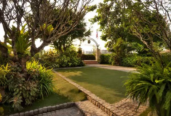 บูติคโฮเทลหรูสไตล์ไทยโคโลเนียลริมแม่น้ำเจ้าพระยา สวนของที่นี่เด็ดตรงทางเข้าที่เป็นซุ้มเหล็กดัดเชื่อมต่อกับท่าเรือของโรงแรม ก่อนที่แขกผู้มางานจะประทับใจกับสวนเขียวขจี ภายใต้กิ่งไม้น้อยใหญ่และฉากหลังที่เป็นตึกสไตล์โคโลเนียลวินเทจ จึงเหมาะมากหากบ่าวสาวจะจัดงานในสไตล์ย้อนยุค ที่ส่วนของ Praya Dinning แห่งนี้จุคนได้ประมาณ 150 คน