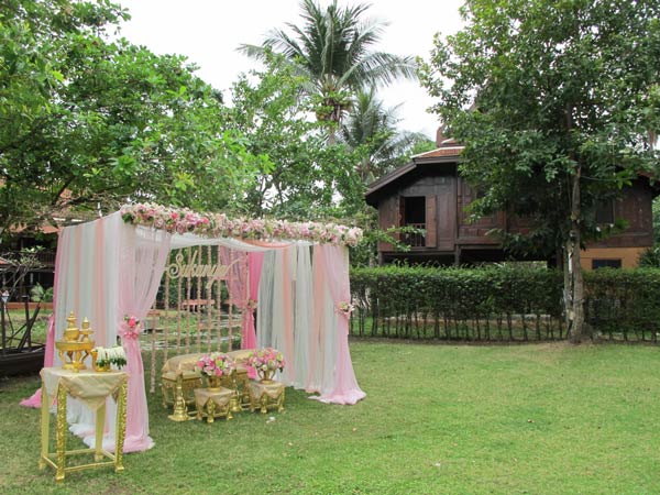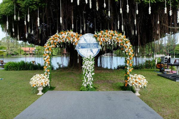 รีสอร์ตแอนด์สปาในจังหวัดนนทบุรี ไม่ไกลจากกรุงเทพมากนักแต่เหมือนย้อนเวลากลับไปในวันวาร สวนกว้างแห่งนี้ที่รองรับคนได้มากถึง 400 คน ถูกโอบล้อมไว้ด้วยต้นไม้ใหญ่และหมู่เรือนไทยหลังงาม บอกเลยว่าเหมาะมากสำหรับงานเช้า และบ่าวสาวที่มีธีมงานแบบไทยแท้ๆก็ต้องไม่พลาดที่นี่เช่นกัน