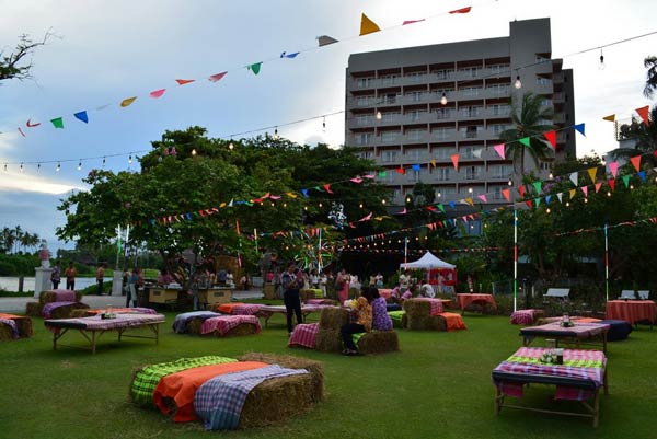 โรงแรมใจกลางเมืองเดินทางสะดวก เหมาะสำหรับบ่าวสาวที่อยากได้ทั้งงานเอาท์ดอร์ชิลๆ ตามใจตัวเอง และอินดอร์เอาใจญาติผู้ใหญ่ เนื่องจากจัดงานที่ห้องกมลทิพย์ ที่จุคนได้ถึง 800 คนก็จะได้พื้นที่สวนด้านนอกที่อยู่ติดกับสระว่ายน้ำไปด้วย คราวนี้ก็มีที่นั่งสบายๆ สำหรับญาติผู้ใหญ่ และสถานที่แฮงค์เอาท์ใต้ต้นไม้ตระกูลปาล์มสำหรับกลุ่มเพื่อน