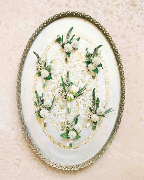 เทคนิคในการสร้างสรรค์อย่างแรกคือ…ลองดูค่ะว่า ดอกไม้ที่ใช้ตกแต่งงานของคุณส่วนใหญ่เป็นดอกไม้ชนิดไหน จากนั้นบอกกับทางโรงแรมหรือเจ้าของสถานที่ให้เอาดอกไม้ชนิดเดียวกันนั้นมาทำเป็นดอกไม้ติดหน้าอกสำหรับเจ้าบ่าวและแขกคนสำคัญในงาน