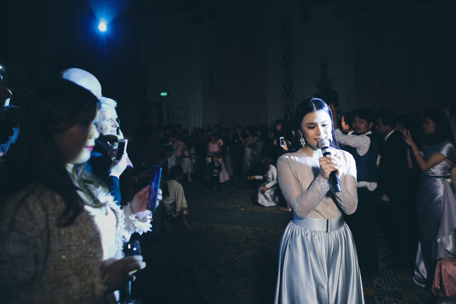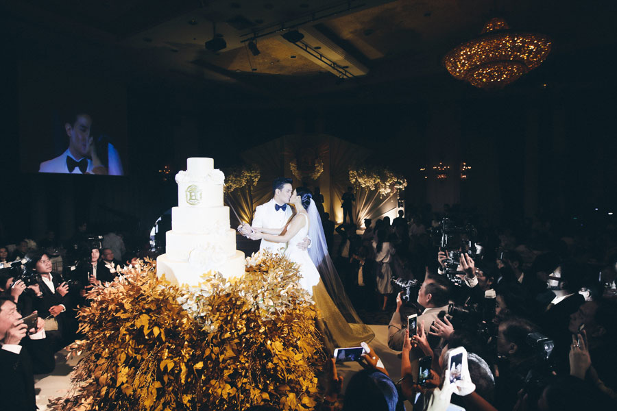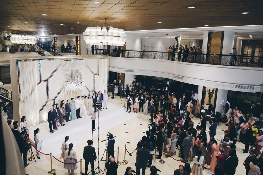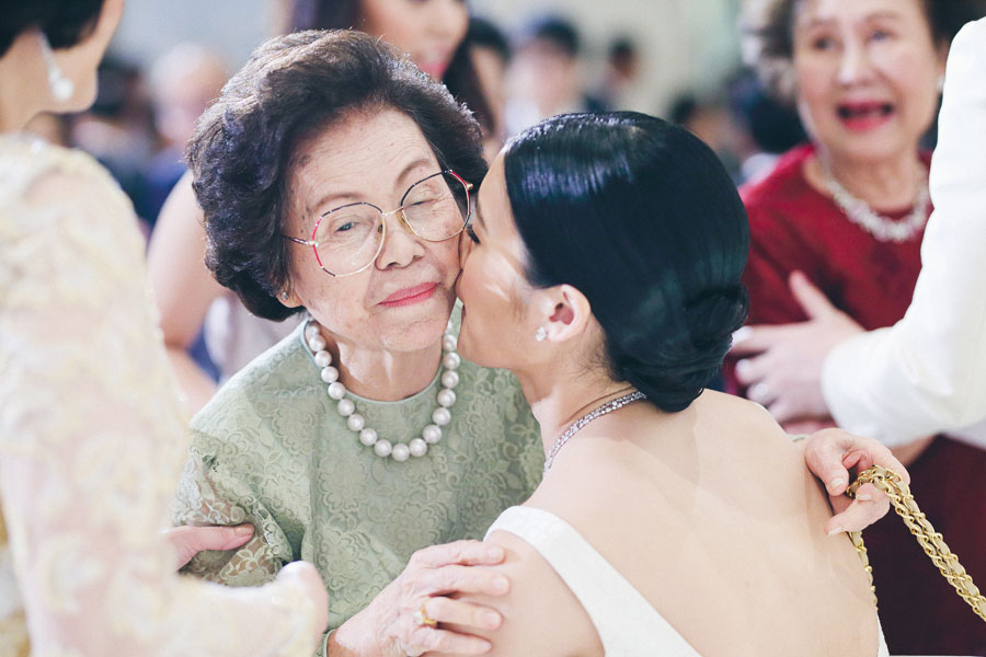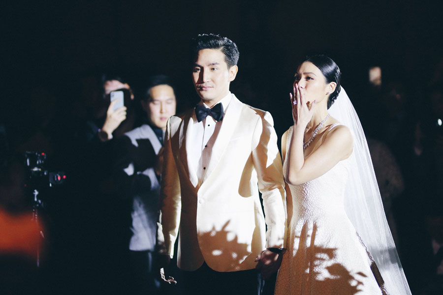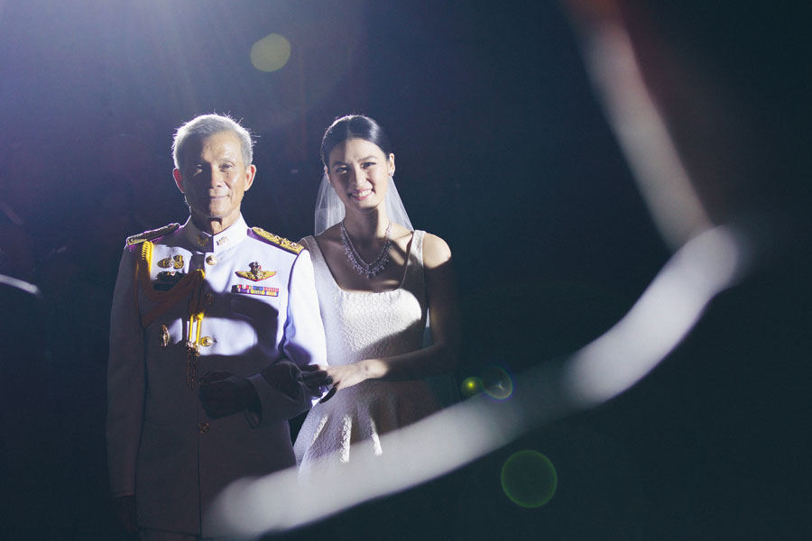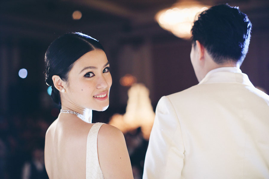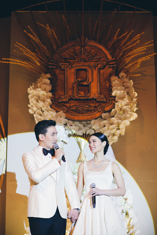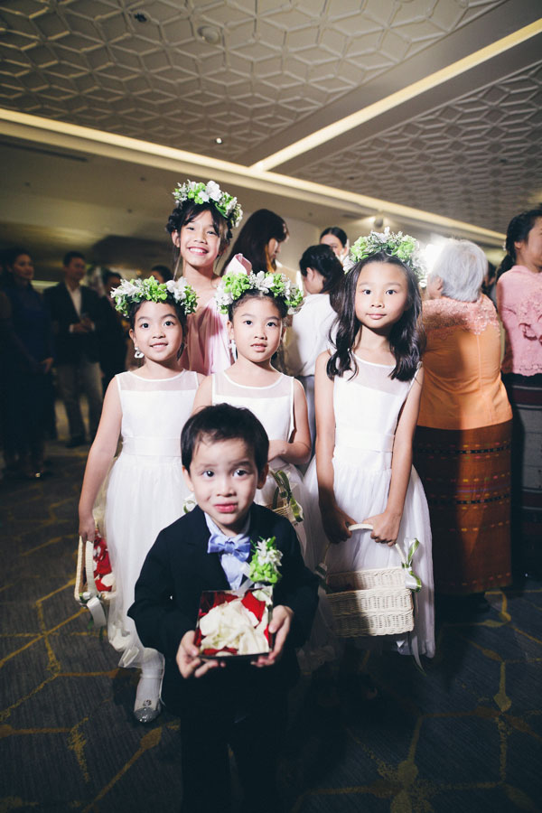ไฮไลต์ของงานคือช่วงเปิดตัวเจ้าสาวที่ได้คนใกล้ตัวอย่าง คุณมัดหมี่ – พิมดาวมาร้องเพลง ก่อนที่จะมีหลานๆ ของทั้งคู่เดินตามมาพร้อมโปรยดอกไม้ให้คุณพ่อนำตัวเจ้าสาวไปส่งให้กับเจ้าบ่าวในบรรยากาศที่อบอวลไปด้วยความอบอุ่น เป็นโมเมนต์ของงานที่เราเชื่อว่าไม่เพียงแต่จะอยู่ในความทรงจำาของทั้งคู่ แต่จะอยู่ในความทรงจำาของแขกทุกคนในงานไปตลอดเช่นกัน