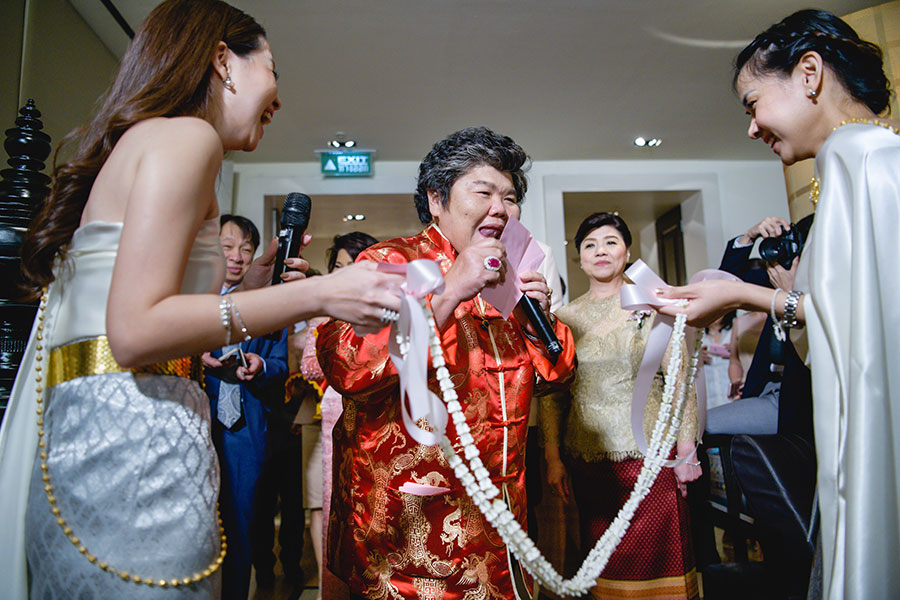 โจทย์ที่คุณแพรวอยากได้คือ งานหมั้นในโทนสีหวานประดับประดาด้วยดอกไม้และใบไม้ให้ดูมีความสดชื่น รวมทั้งอยากควบรวม พิธีหมั้นแบบไทยและจีนเข้าด้วยกัน เราจึงได้เห็นเถ้าแก่ฝ่ายชายในชุดสีแดงสไตล์จีนแท้ๆ เจรจาสู่ขอผ่านประตูเงิน-ประตูทองที่เหล่าเพื่อนเจ้าสาวมากันในชุดไทยสไบสีหวาน รวมทั้งเจ้าสาวเข้ายกพิธียกน้ำชาในชุดไทยจักรพรรดิ สุดท้ายแล้วได้ออกมาเป็น ภาพงานแต่งงานที่ผสมผสานทั้งสองวัฒนธรรมการแต่งงานเข้าด้วยกันอย่าง สวยงามกลมกลืนและกลมกล่อมเหมือนความรักในชาและกาแฟของทั้งคู่นั่นเอง