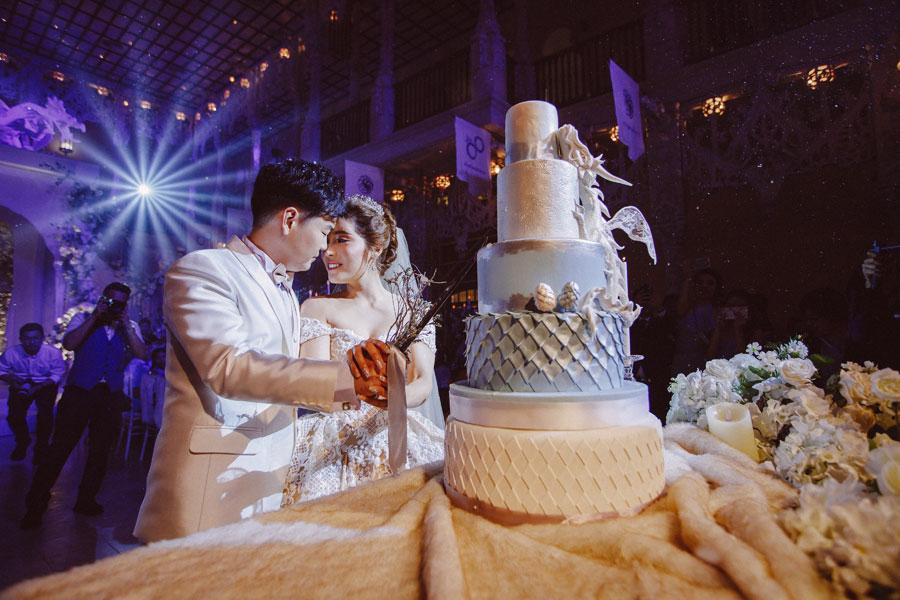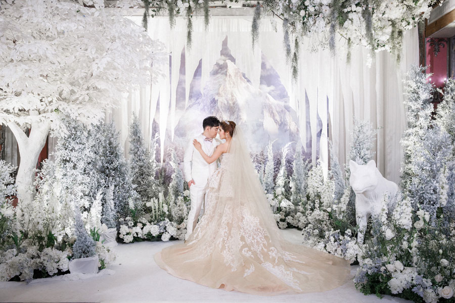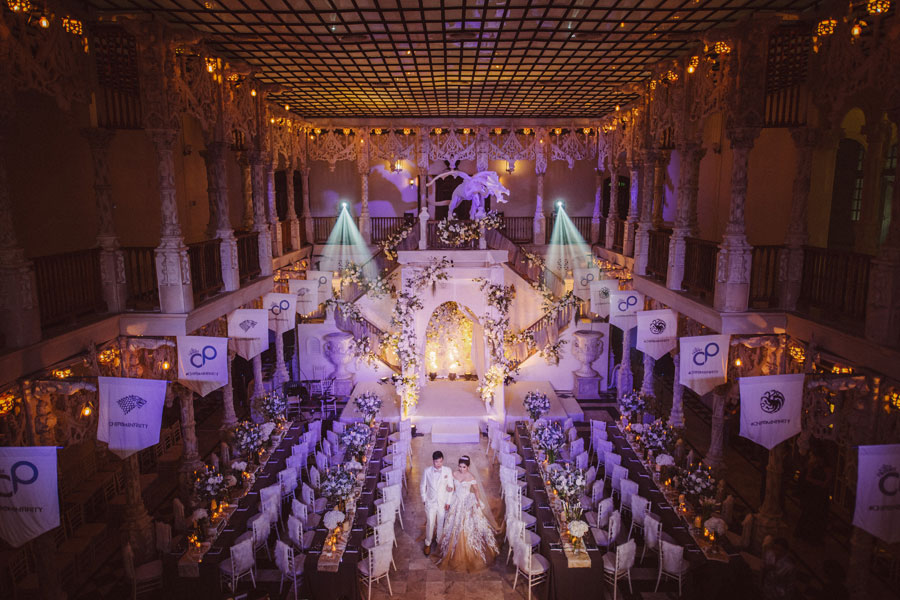 ธีมงาน Game of Thrones แน่นอนว่ามาจากซีรี่ส์โปรดของเจ้าบ่าวและเจ้าสาว คุณปอมเล่าว่า “ตั้งแต่เราไปอยู่ที่อเมริกาเป็นซีรี่ส์เรื่องแรกที่ดูด้วยกันมาตลอด 7 ปี ปกติเจ้าสาวจะชอบซีรี่ส์ไทย แต่ประทับใจในความสวยงามของซีรี่ส์เรื่องนี้มาก โดยเฉพาะฉากที่เป็นน้ำแข็งทางตอนเหนือของเรื่อง เลยได้แรงบันดาลใจมาประยุกต์ใช้กับงานแต่งงาน”