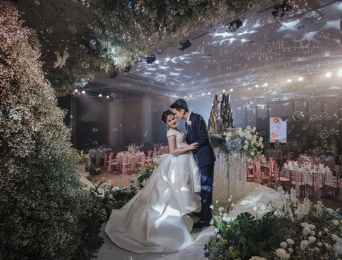 บ่าว – สาวจัดงานแต่งงานแสนอบอุ่นขึ้นที่โรงแรม Welcome World Beach Resort & Spa ซึ่งเป็นโรงแรมที่คุณพ่อของเจ้าสาวตั้งใจสร้างให้กับครอบครัว ทั้งคู่ใช้เวลาวางแผนจัดงานแต่งนานถึง 8 เดือนเพื่อเนรมิตที่แห่งนี้ให้เต็มไปด้วยความรัก โดยมีบริษัทเศกสกล 1982 มาดูแลเรื่องโปรดักชั่นและรูปแบบงานที่สะท้อนตัวตนของบ่าว – สาว และได้คุณแบงค์ กำไลทอง แห่งร้านกำไลทอง เชียงราย มาเนรมิตดอกไม้ภายในงาน โดยเสกพื้นที่โรงแรมทั้ง 3 ชั้นให้กลายเป็นสวนสวรรค์สุดโรแมนติก พร้อมทีมงานอีกกว่า 200 ชีวิตที่ช่วยสานฝันครั้งนี้ของบ่าว – สาวให้เป็นจริง