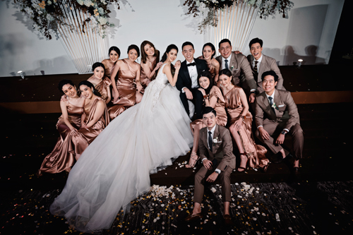 ก่อนที่จะเริ่มคิดธีมงาน คุณซีได้เจอกับชุดแต่งงานที่ถูกใจและชอบชุดนี้มากๆ ทางคุณน้ำ – ไข่แดงดีไซน์ ผู้จัดงานจึงได้คิดธีมงานแต่งขึ้นมาจากชุดของเจ้าสาวเป็นหลัก โดยเน้นให้รูปแบบงานออกแนวหวานๆ แต่มีความเรียบโก้และคลาสสิคอยู่ในตัว เน้นการตกแต่งในโทนสีทองและสีคอปเปอร์ให้ดูหรูหรา บวกกับได้มาเจอกับสถานที่จัดงานแต่งงานที่ ห้องแมกโนเลีย บอลรูม ของโรงแรม วอลดอร์ฟ แอสโทเรีย กรุงเทพ ที่มีความเรียบโก้อยู่ในตัว พร้อมมีการตกแต่งที่หรูหราทันสมัยเข้ากับธีมมากๆ และยังเป็นโรงแรมที่เพิ่งเปิดใหม่ จึงตอบโจทย์และตรงใจของบ่าวสาวมาก