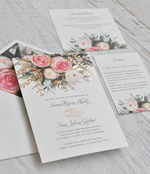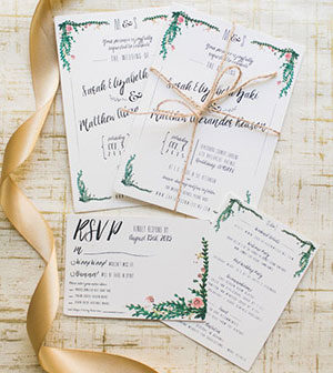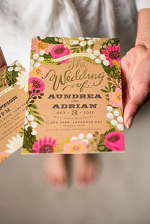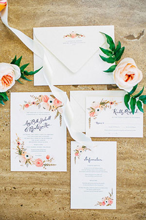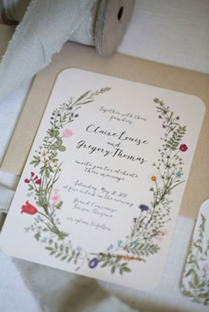 การ์ดแต่งงานวาดลวดลายดอกไม้ด้วยสีน้ำกำลังมาแรงแถมน่ารักแบบมีกิมมิคเป็นงานแฮนด์เมด และบ่าวสาวเองก็สามารถออกแบบได้ด้วยว่าจะให้ดอกไม้อยู่ส่วนไหนของการ์ จะทำเป็นการ์ดมุ้งมิ้ง หรือสวยหวานคลาสสิคก็ได้ทั้งนั้น