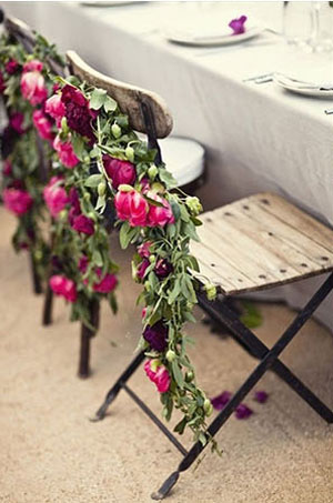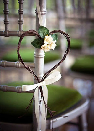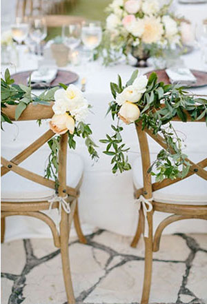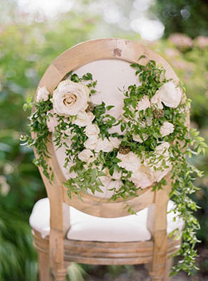 ในส่วนของงานดีเทลอย่างเก้าอี้ เรามีไอเดียเด็ดๆ อย่างการใช้เถาวัลย์มาดัดเป็นรูปหัวใจติดตามเก้าอี้ หรือจะจัดช่อดอกไม้เล็กๆ ประดับให้ดูสวยงาม แต่ควรเลือกเก้าอี้สีโทนอ่อน หรือเอิร์ธโทน อย่างขาว ชมพู น้ำตาลงี้ จะทำให้งานดูกลมกลืมไปกับสวนสวย