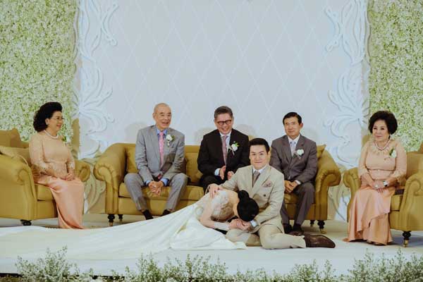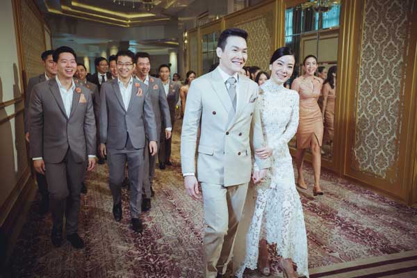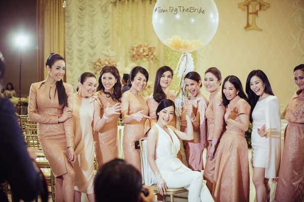 ใครจะไปคิดว่าเจ้าสาวคนหนึ่งจะสามารถแปลงกายเปลี่ยนชุดเจ้าสาวได้ถึง 6 ชุด 7 ลุคในหนึ่งวัน พร้อมทำพิธีแต่งงานครบถ้วนทั้งไทย -จีน – ฝรั่ง แต่คุณเฟย์ – อรชุมา เซเลบริตี้คนสวยเจ้าสาวของเรา ชีทำได้แบบคอมพลีตลี่ แถมยังโชคดีมีเจ้าบ่าวอย่างคุณติ – ปิติพัฒน์ คอยเห็นดีเห็นงามช่วยเลือกชุดเจ้าสาวให้อีกต่างหาก พร้อมให้เหตุผลว่า หุ่นสวยโชว์ได้ก็ต้องโชว์!