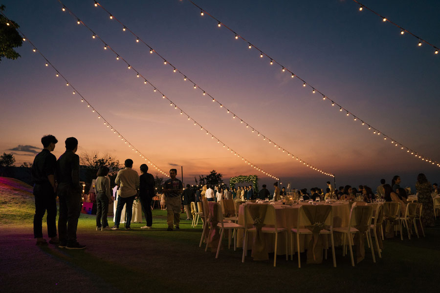 บ่าว-สาวช่วยกันระดมความคิดและเนรมิตงานด้วยตัวเองทุกขั้นตอน โดยมีไก่ – วรายุฑคอยเป็นแม่งาน เน้นธีมงาน เรียบง่ายเป็นกันเองในบรรยากาศสบายๆ ท่ามกลางต้นไม้ ขุนเขา และสายลมหนาว ให้แขกทุกคนที่มาร่วมงานได้รับ ความสุขเหมือนมาพักผ่อน ซึ่งงานนี้ก็มีบรรดาเพื่อนๆ และพี่น้องในวงการมาร่วมงานมากมาย