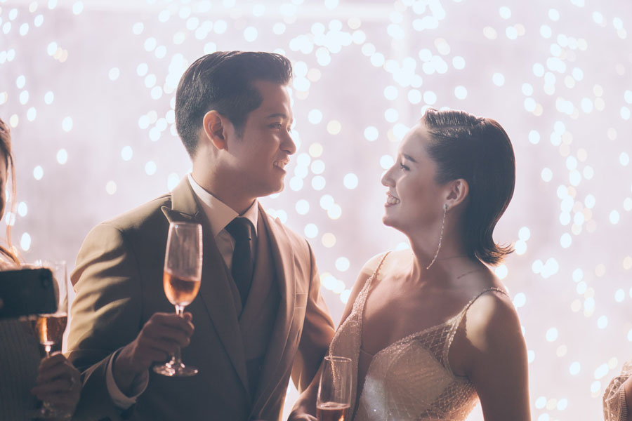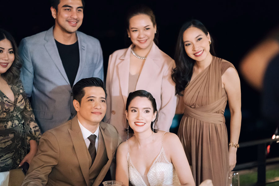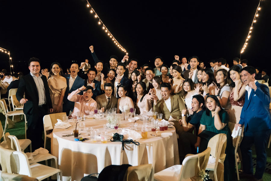 งานนี้ได้จอย-รินลณี และทีน-สราวุฒิมาทำาหน้าที่พิธีกร โดยหลังจากเชิญบ่าว-สาวเปิดแชมเปญเฉลิมฉลองและต่อด้วยการจุดพลุสวยงามแล้วเสียงเชียร์ให้พระเอกนางเอกของงานหอมแก้มกันก็ดังขึ้นสร้างบรรยากาศสนุกสนานท่ามกลางความอบอุ่นสุดประทับใจ จากนั้นจึงเป็นช่วงโยนดอกไม้ที่สาวๆ รอคอย ซึ่งสาวโสดทุกคนดูมีความมุ่งมั่น และผู้ที่ได้ครอบครองช่อดอกไม้ซึ่งมีแววจะได้เป็นเจ้าสาวคนต่อไปคือดีเจต้นหอม และหญิง-รฐา เรียกเสียงกรี๊ดได้ทั่วทั้งงาน และปิดท้ายความสนุกด้วยอาฟเตอร์ปาร์ตี้เปิดฟลอร์เต้นกันสนุกสนานอย่างไม่มีใครยอมใครทำให้งานฉลองสมรสในค่ำคืนนั้นออกมาน่าประทับใจและจะเป็นที่จดจำไปอีกนานแสนนาน