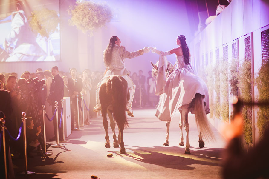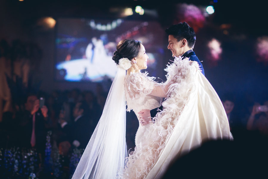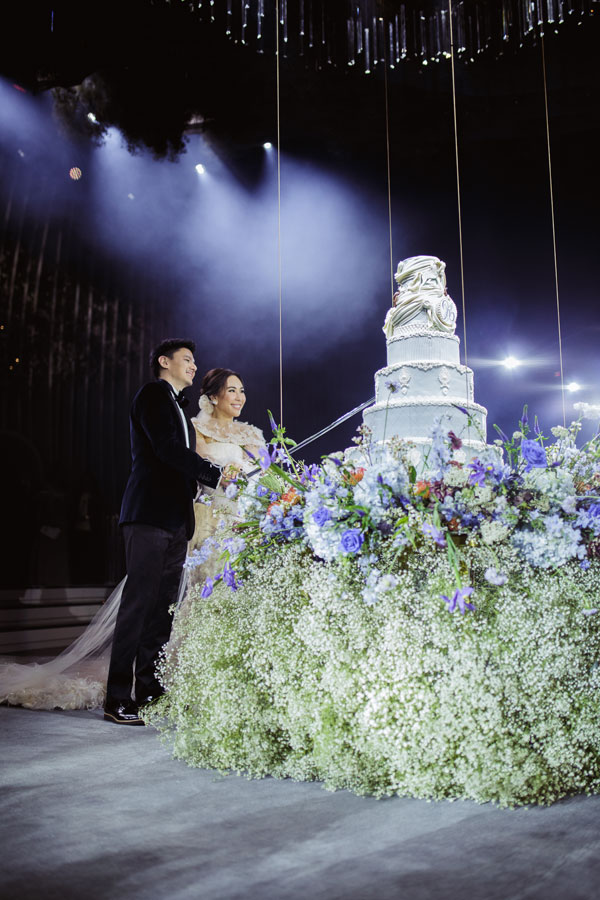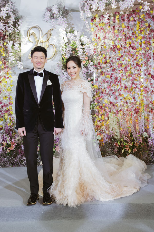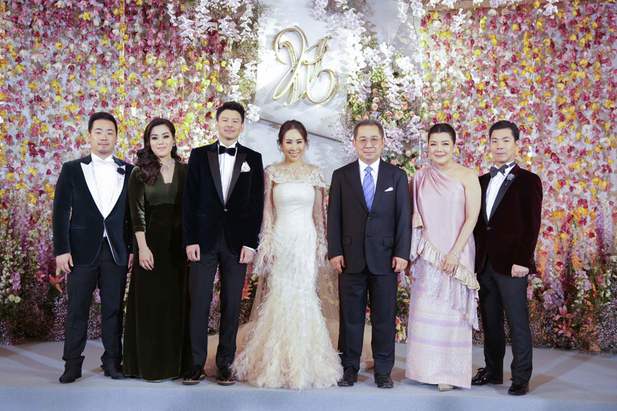 โดยงานเลี้ยงฉลองพิธีมงคลสมรสเต็มไปด้วยความอบอุ่น บรรยากาศในงานเต็มไปด้วยมวลดอกไม้นานาพรรณตกแต่งในสไตล์ยุโรป–เวสเทิร์น ประดับด้วยคริสตัลสุดอลังการ สร้างความโรแมนติกและสวยงามดุจเทพนิยาย