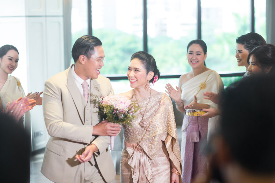 หลังจากที่คุณโก้-ทศพลและคุณมีมี่-อนงค์นาฏได้รู้จักกันผ่านรุ่นน้องตั้งแต่ต้นปี 2560 จึงศึกษาดูใจจนตกลงคบกัน ด้วยความที่เป็นสายท่องเที่ยวและนักชิม แถมยังชอบดูหนังเหมือนกัน ทำให้ทั้งคู่มีไลฟ์สไตล์ที่เข้ากันได้ดี ช่วงเวลาที่คบกันแม้ไม่นานนัก จึงไม่ได้เป็นปัญหาสำหรับคุณมีมี่และคุณโก้ แพลนการแต่งงานจึงเกิดขึ้นทันใจกองเชียร์เลยทีเดียว แถมยังเป็น งานแต่งไทย ที่สวยหวานอีกด้วย