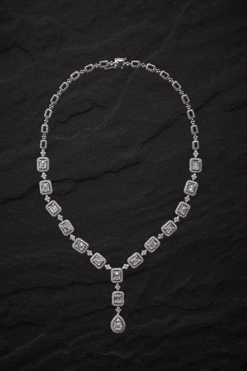 ส่วนความสวยงามของเครื่องประดับเซตนี้คือความแวววาวจากเพชร Hearts & Arrows นํ้า 100% ซึ่งถือเป็นเพชรที่มีคุณภาพสูงที่สุด ดีไซน์มาภายใต้คอนเซ็ปต์ที่ผสานความหรูหราและความอ่อนช้อยเข้าไว้ด้วยกันผ่านฝีมือของช่างผู้เชี่ยวชาญจนได้ผลงานชั้นยอดที่ช่วยส่งให้ผู้สวมใส่มีความมั่นใจและงดงามที่สุดในวันสำคัญ