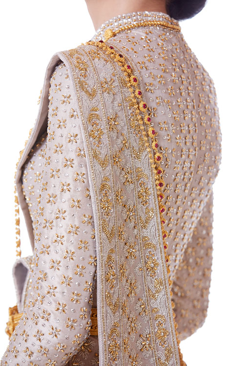 ชุดไทยเป็นชุดที่งดงามและส่งให้ผู้สวมใส่ดูโดดเด่นสง่างามยิ่งขึ้น แต่กว่าจะเลือกชุดได้ในแบบที่ตรงใจก็ต้องใช้เวลาเสาะหากันพอสมควร เพราะนอกจากรูปแบบและสีสันแล้ว เนื้อผ้าก็มีบทบาทสำาคัญที่ช่วยเสริมให้ชุดนั้นๆ สวยโดดเด่นและทรงคุณค่ายิ่งขึ้น ยิ่งเป็นชุดไทยที่ใช้ในงานแต่งงานด้วยแล้วยิ่งต้องคัดสรรกันเป็นพิเศษเพื่อให้ออกมาดูดีที่สุด