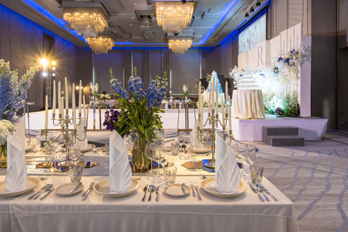 - หากจัดงานแต่งงานภายในเดือนมีนาคม 2563 รับส่วนลด 10% จากยอดค่าใช้จ่ายทั้งหมด และรับฟรี! ค่านำเข้าวงดนตรี พร้อมค่าเปิดขวดหรือค่านำเข้าดอกไม้ในวันแต่งงาน