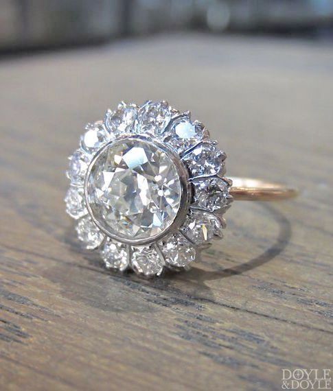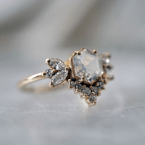 หัวแหวนที่เกิดจากการรวมตัวกันของเพชรหลายเม็ด เกิดเป็นลวดลายหรือรูปทรงแปลกตา เรียกกันว่าเป็นแหวนแบบ Cluster Engagement Rings ดูแล้วจะมีความวินเทจอยู่นิดๆ โดยเริ่มได้รับความนิยมให้เป็นแหวนหมั้นในช่วงศตวรรษที่ 18 ข้อดีอีกอย่างของแหวนสไตล์นี้ก็คือ ใช้เพชรเม็ดเล็กๆ ประกอบกัน แต่มองแล้วจะเป็นหัวแหวนที่ใหญ่ตู้มเลยทีเดียว